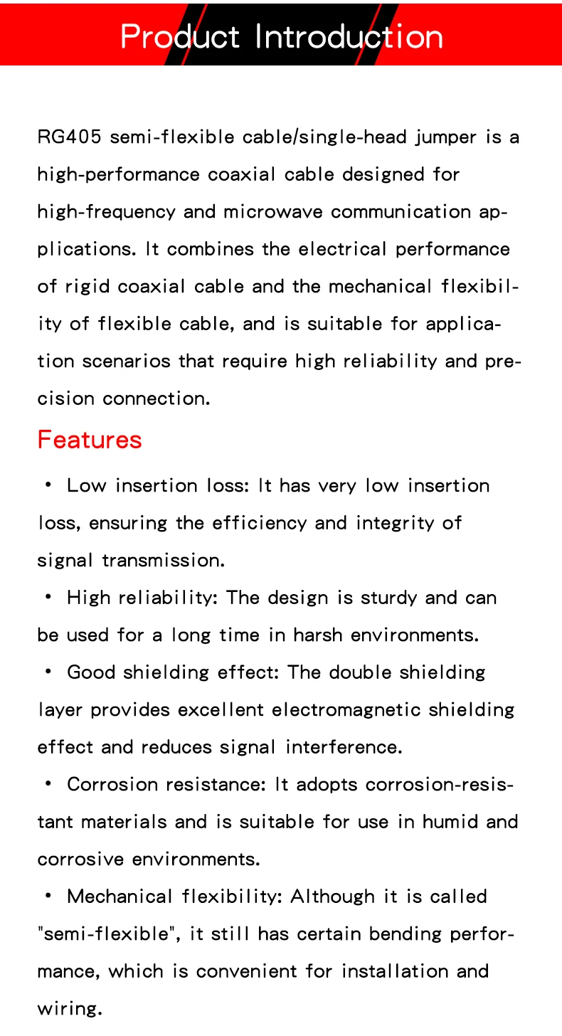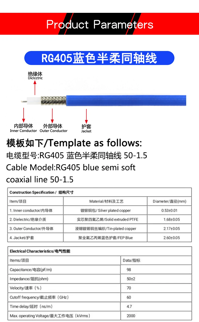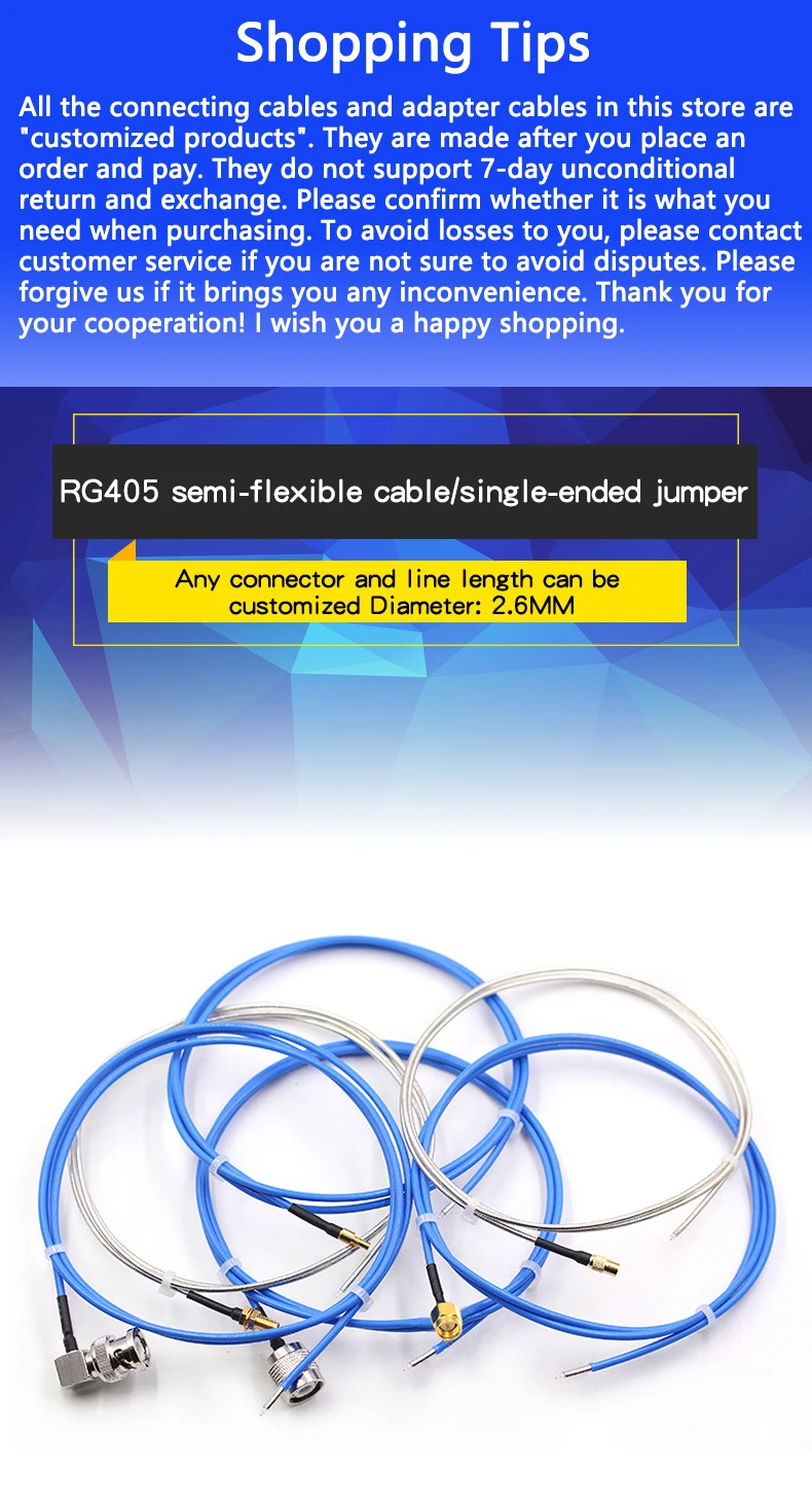 1M RG405 semi-flexible 086 RF jumper BNC TNC N SSMA SSMB SSMC SSMP male and female single head line