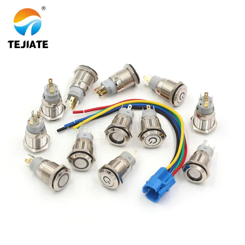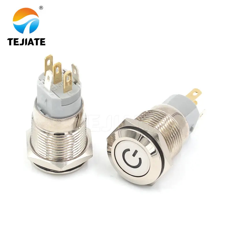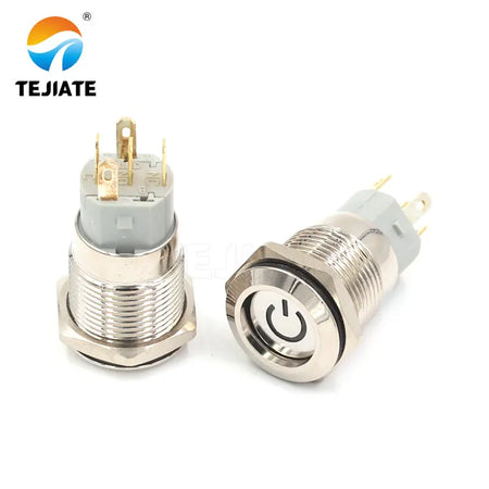 1PCS 24V 16MM Flat Header Annular Metal Button Switch Self Reset Or Self Locking Power With Waterproof Metal Base