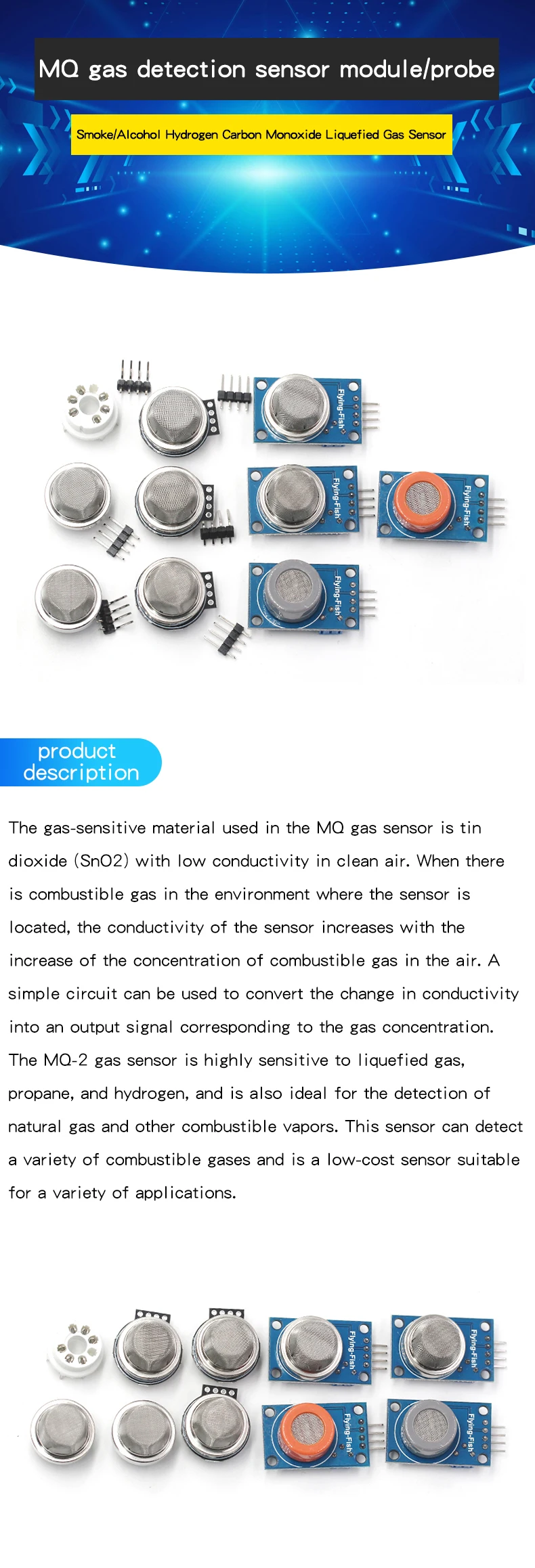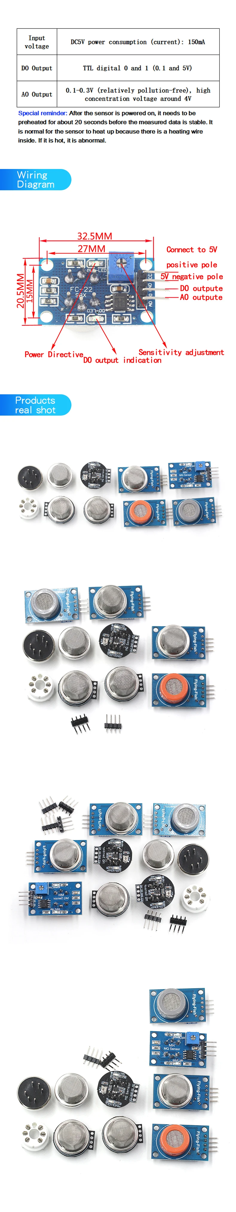 1pcs MQ-2-135-3-7-9 smoke air sensitive alcohol hydrogen carbon monoxide combustible liquefied sensor module probe 2