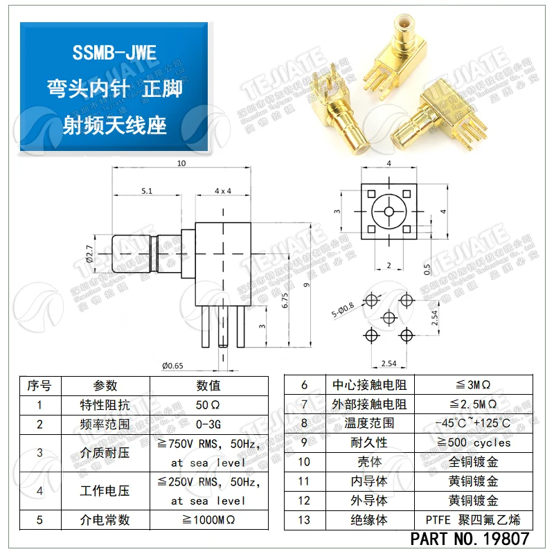 1PCS SSMB-JWE/JE Male Four Pin Mini SMB Fixedj Plug Rf Coaxial PCB Mount Right Angle Connector