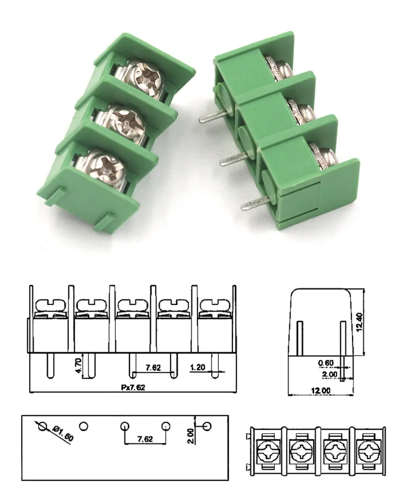 5PCS KF7.62-2P3P4P position terminal block PCB terminal connector 7.62mm splicable green/black