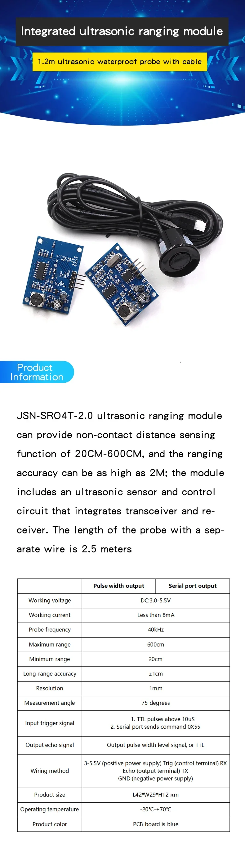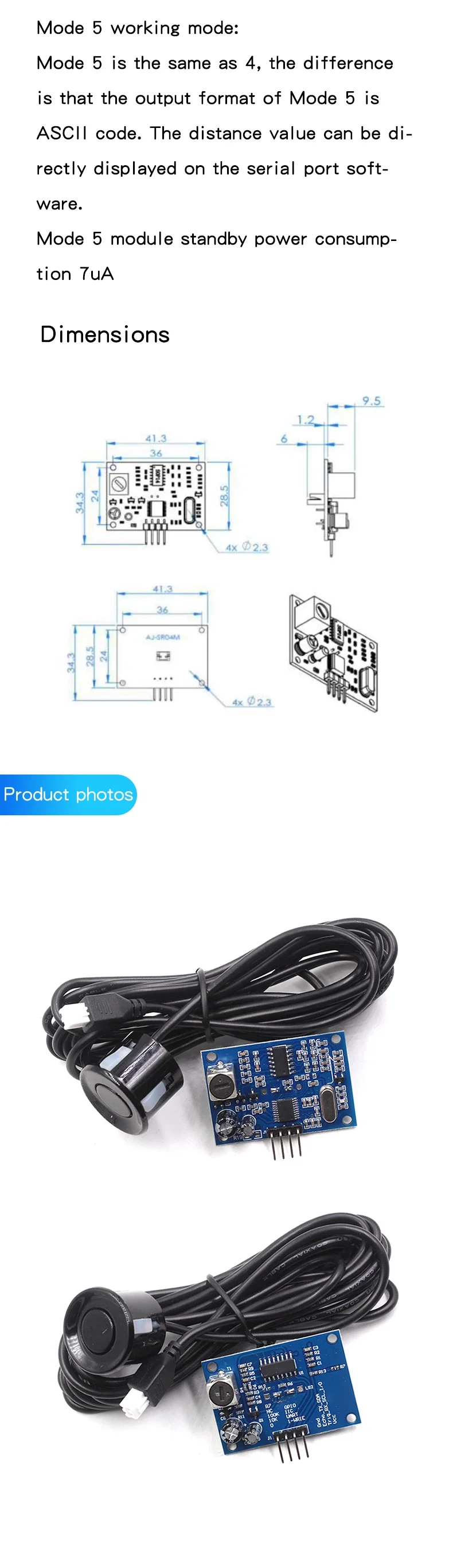 AJ-SR04M Transceiver integrated reversing radar waterproof ultrasonic sensor distance measurement module K02